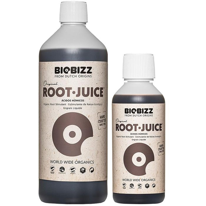 В составе 100% растительного стимулятора RootJuice содержатся гуминовые кислоты, фульвокислоты и морские водоросли высшего качества. Изначально он был разработан для усиления пересаженных в почву растений для укрепления их корневой системы. Сейчас это удобрение используют в гидропонике и при выращивании в минеральной вате, поскольку Root Juice обеспечивает невероятно мощный рост корней.